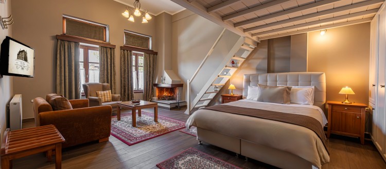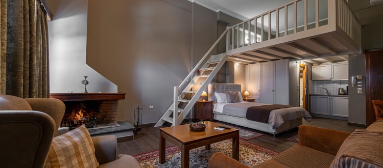 Ένας ζεστός χώρος σε δύο επίπεδα που αποπνέει άνεση, οικειότητα και ζεστασιά. Το ξύλο κυριαρχεί στη διακόσμηση και δίνει χαρακτήρα, ενώ το αναμμένο τζάκι προσφέρει στιγμές χαλάρωσης και θαλπωρής.